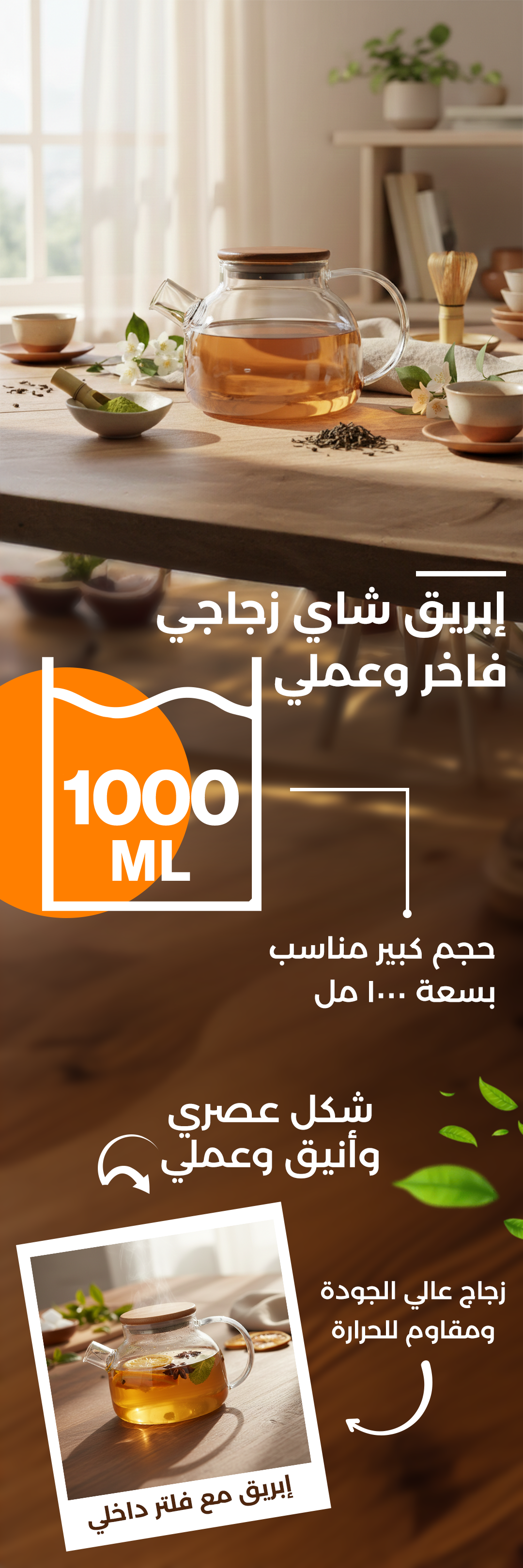 إبريق شاي زجاجي فاخر مع مصفاة داخلية – تصميم أنيق وصحي لتحضير الشاي بكل احترافيةاستمتع بتجربة تحضير الشاي كما لم تفعل من قبل مع هذا الإبريق الزجاجي ال...